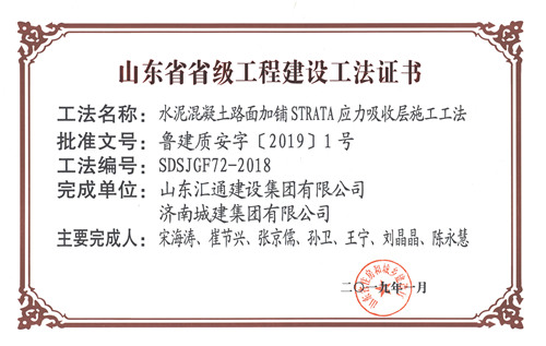 南宫体育 “水泥混凝土路面加铺STRATA应力吸收层施工工法”被评为山东省省级工程建设工法