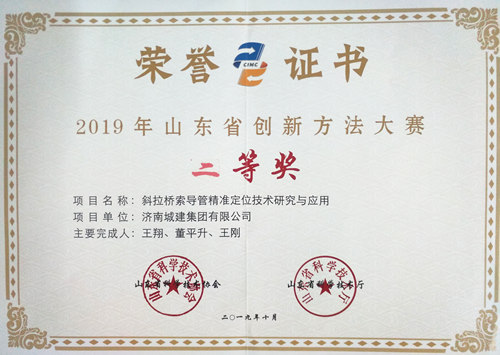 南宫体育 《斜拉桥索导管精准定位技术研究与应用》荣获“2019年度山东省创新方法大赛二等奖”