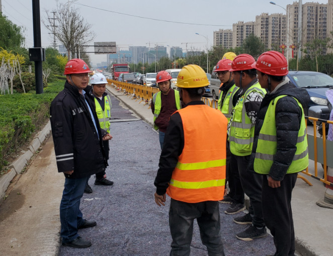 坚守安全环保底线,压实责任、多措并举,妥善处理扬尘噪音问题,打造惠民示范工程。施工现场使用铣刨机破除结构层,减少造声污染;设置雾炮等洒水降尘设备,交通平峰期安排洒水车、清扫车上路洒水降尘、清扫路面,实行“渣土不落地”,多措并举加强扬尘控制。夜间施工完成后对交通隔离设施进行清洁,调整摆放直顺。面对工程时间紧、战线长、人员不足等困难,项目部人员坚持一岗多责,人人都是安全员,人人都是质检员,不论任何岗位发现任何问题都会及时指出并要求整改。港西路供水管道工程作为开放性施工工程,所有工序面向社会,接受监督,业主领导多次到现场视察工作,项目部的安全文明施工、质量标准均得到业主及社会各界一致好评。